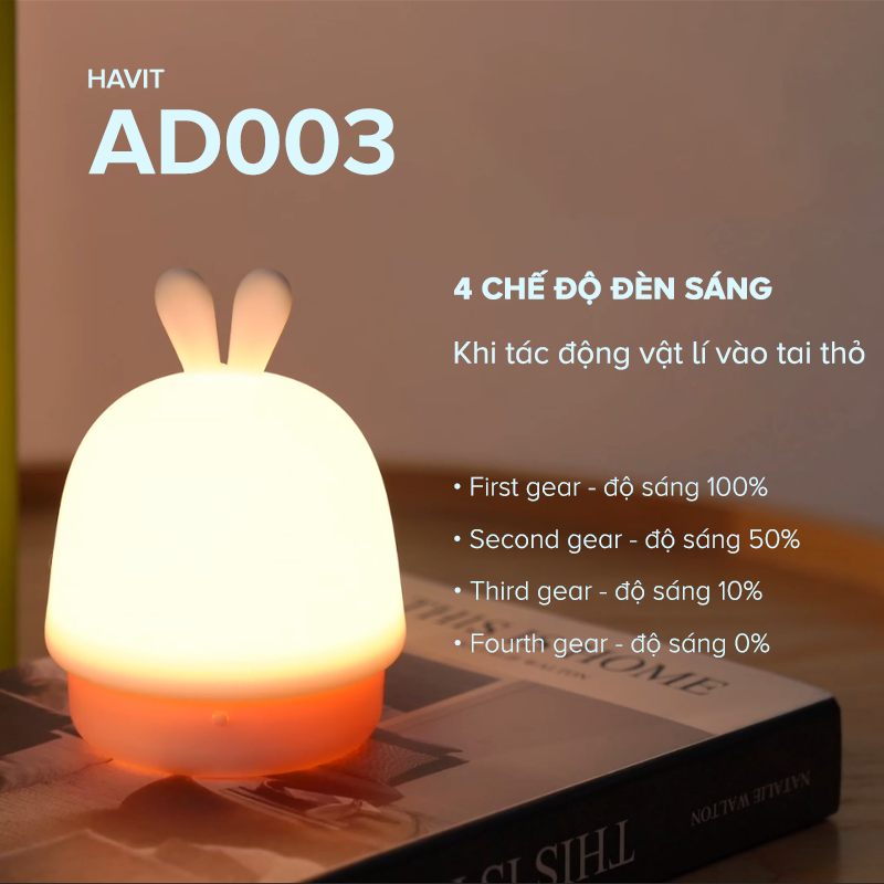 Đèn Ngủ Điều Chỉnh Độ Sáng Havit AD003 - Chính Hãng BH 12 Tháng Dizigear (Màu Hồng)