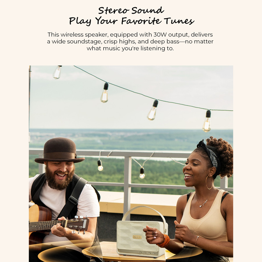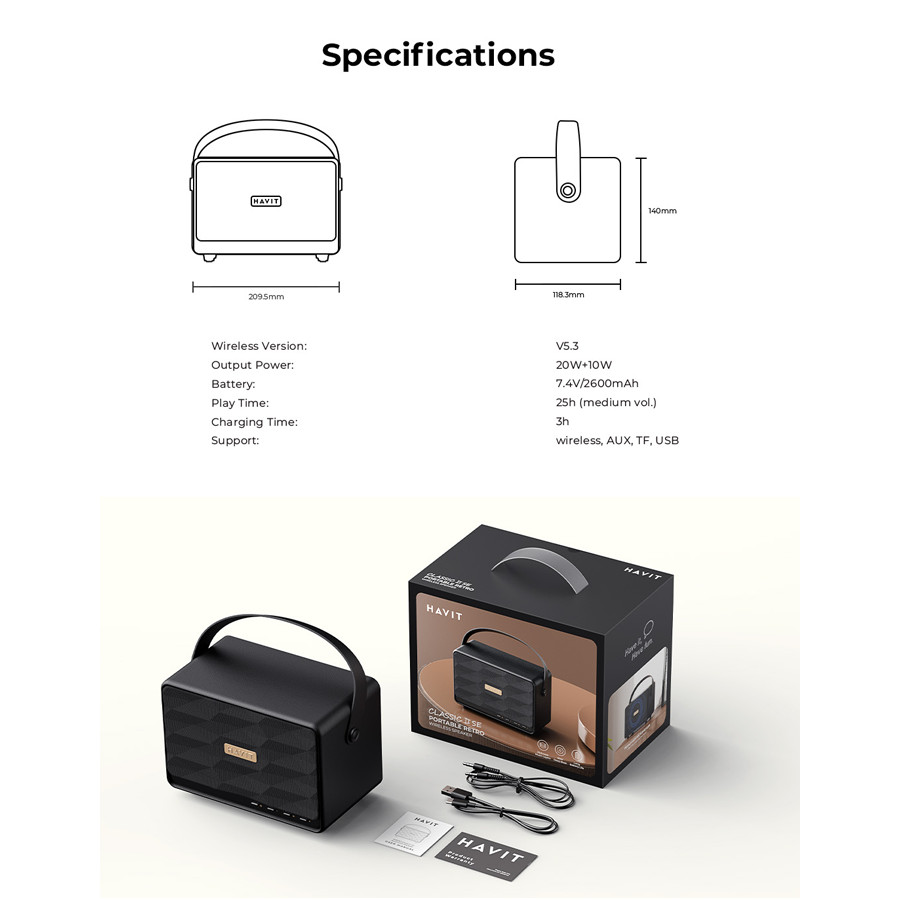 Loa Bluetooth HAVIT Classic II, BT 5.3, Công Suất 30W, Thiết Kế Retro, Âm Bass Sống Động, Nghe Đến 25H - Hàng Chính Hãng