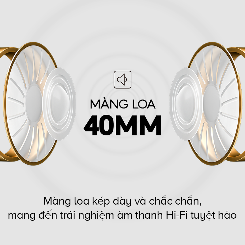 • Màng loa rộng 40mm, âm bass chắc, sống động