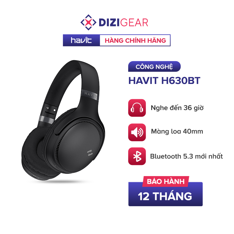 Tai Nghe Bluetooth Headphone HAVIT H630BT, Driver 40mm, BT 5.3, Gập Tiện Lợi, Nghe Đến 36H - Hàng Chính Hãng Dizigear