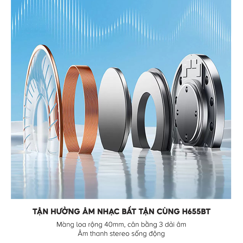 • Màng loa rộng 40mm, 3 dải âm cân bằng, âm thanh stereo sống động