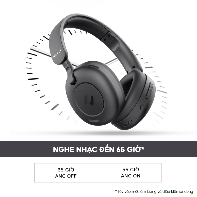Tai Nghe Headphone Bluetooth HAVIT H655BT, BT 5.3, Chống Ồn Chủ Động Hybrid ANC, Gamemode 60ms, Nghe Đến 65H - Hàng Chính Hãng Dizigear